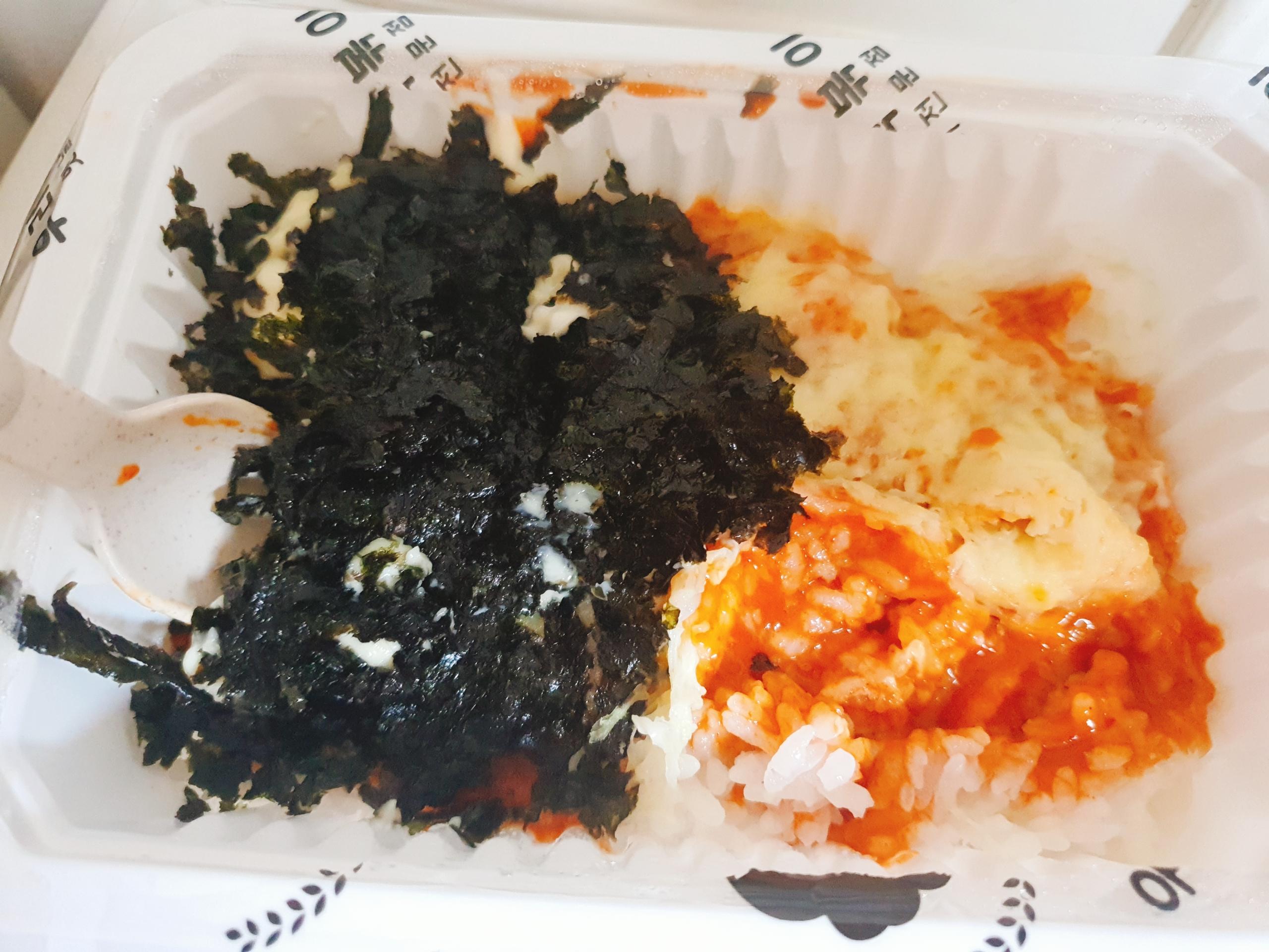 그래서 시키게 됬어염 헤헤 거기에 로제떡볶이도 맛있다 해서 로제에 밥은 참치가 국룰인 사람인데 우리할매는 치즈국물비빔밥이 메인이라구 하더라구요~!!