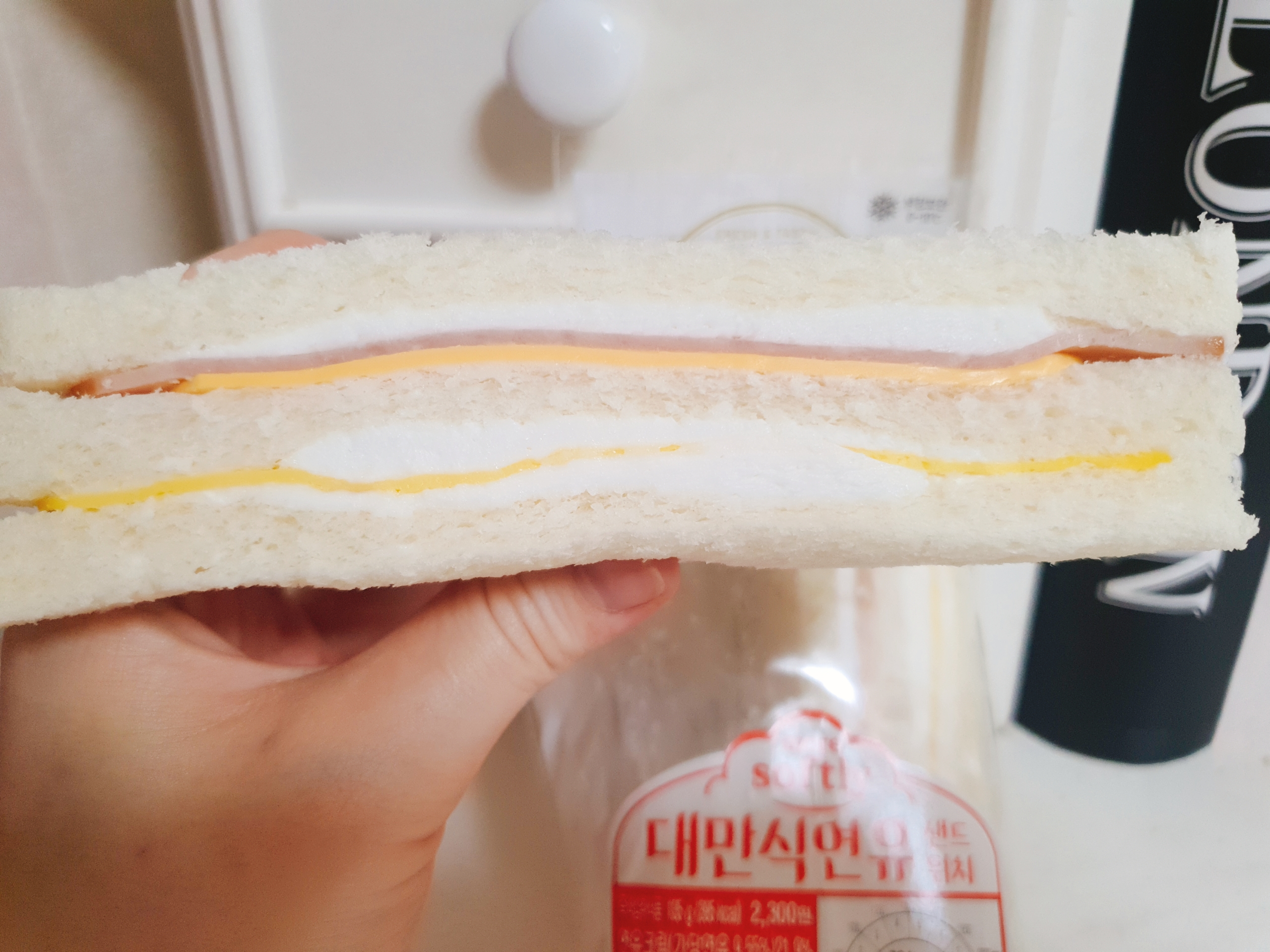 맛 리뷰: 출출한데 밥은 먹기 싫궁... 디저트 같은 과자루 먹기엔 배두 안차고 너무 입이 달구 근데 밥은 싫쿠...ㅋㅋㅋ 뭐 어쩌라지 싶은 마음이 들때 먹기 좋은 대만식연유 샌드위치 라구용ㅋㅋㅋ 햄이랑 치즈가 있어서 짧쪼름해서 식빵과 같이 약간 든든한 느낌을 충족시켜주면서 연유생크림이 또 적당히 달콤해서 밥과 디저트를 함께 먹었군! 싶은 그런 밥과간식 사이의 느낌이라구용~ 밥 먹기 싫을때 완죤 추천이에영 편의점에서 손쉽게 살 수 있으니까 트라이 해보시라구용ㅋㅋㅋ