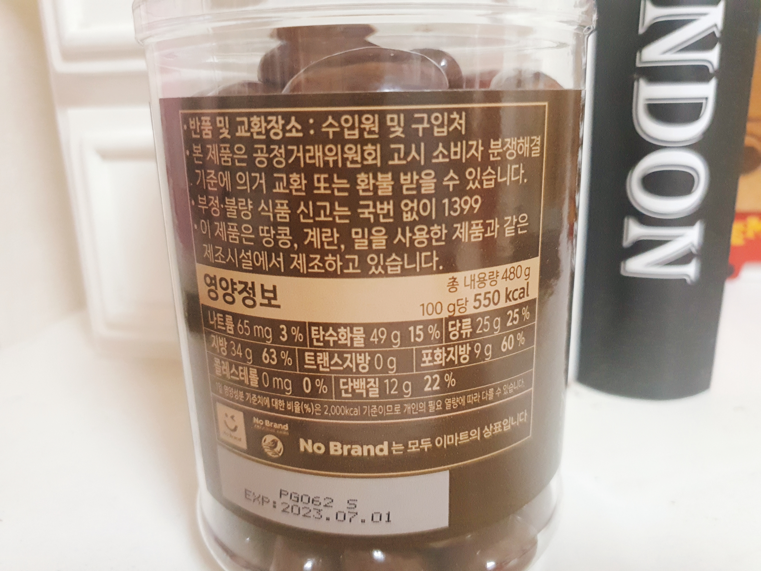 맛 리뷰: 견과류 좋아하는 사람이다 특히 아몬드러버라면 꼭꼭 사드세여ㅠㅠㅠ 전 견과류와 초콜릿에 특히 환장하는 사람이라 항상 닥터유 초콜릿 매번 먹거든요ㅠㅠ 요즘 아몬드초콜릿 한봉지에 12개도 안되는 작은게 2-3천원 해서 매우 슬픈데 노브랜드가 한떨기 같은 희망을 주거든요!!! 넘넘 맛있어요 초코도 진짜 진~한 밀크 초콜릿인데 다크가 좀 들어간 부드러운 초콜릿 맛이에요 너무 부담스럽게 달지도 않고 다크초콜릿이 꽉 잡아주면서 그렇다고 다크만이 아닌 밀크도 있어서 너무 부드러운!!!ㅠㅠ 또 아몬드가 씹는 식감도 주면서 화룡정점 이라구요 아몬드와 초콜릿은 정말루 사랑입니닷!! 견과류 좋아하는 사람이라면 아몬드 초콜릿 무조건 좋아할 수밖에 없다구요 꼭꼭 드셔보세여ㅠㅠ