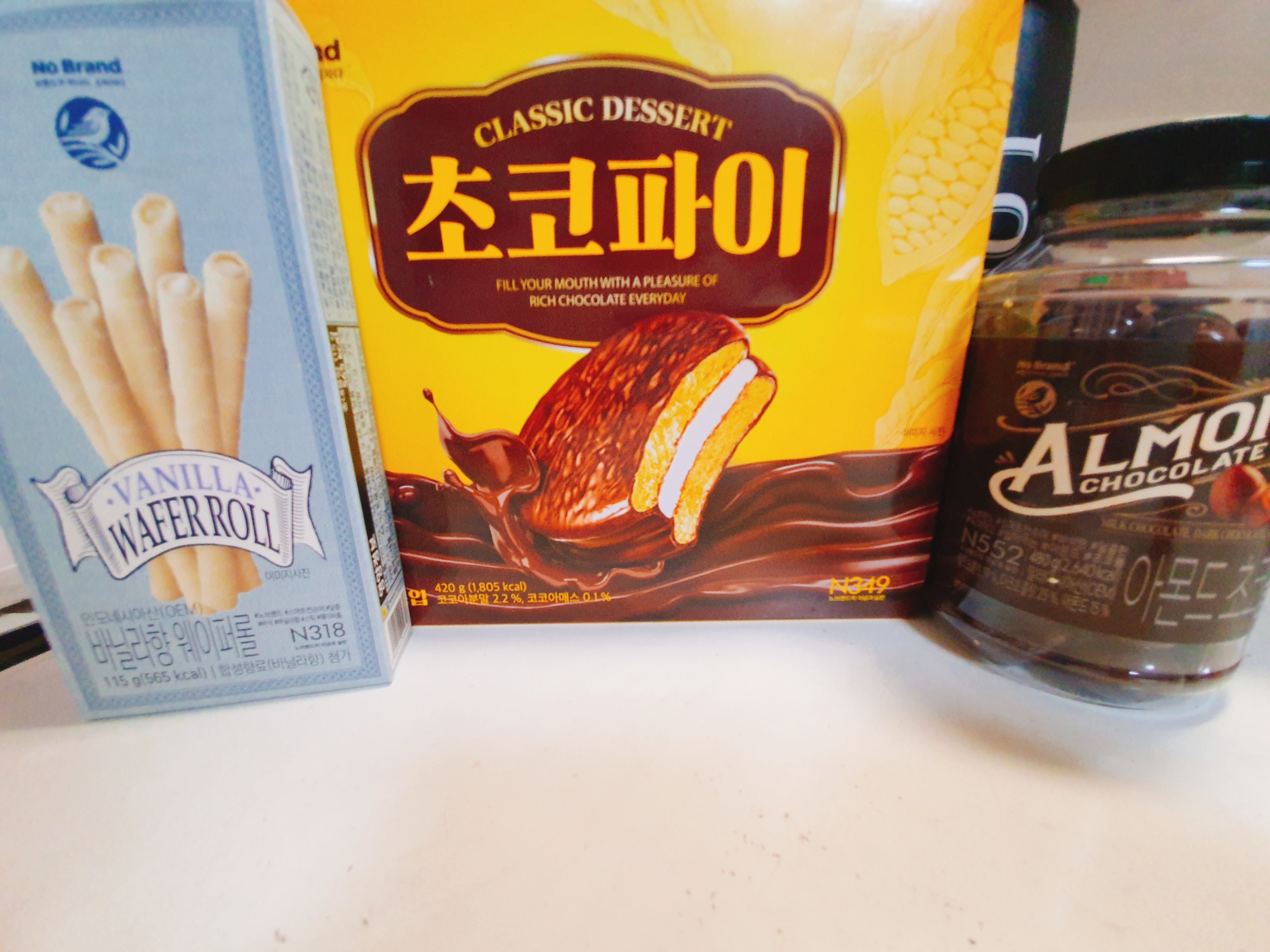 안녕하세요~ 오늘은 노브랜드 가성비왕 초코파이랑, 비싸지만 포기 안되는 아몬드 초콜릿, 편의점에서 사먹는 바닐라향 웨이퍼 롤을 들구 왔어요