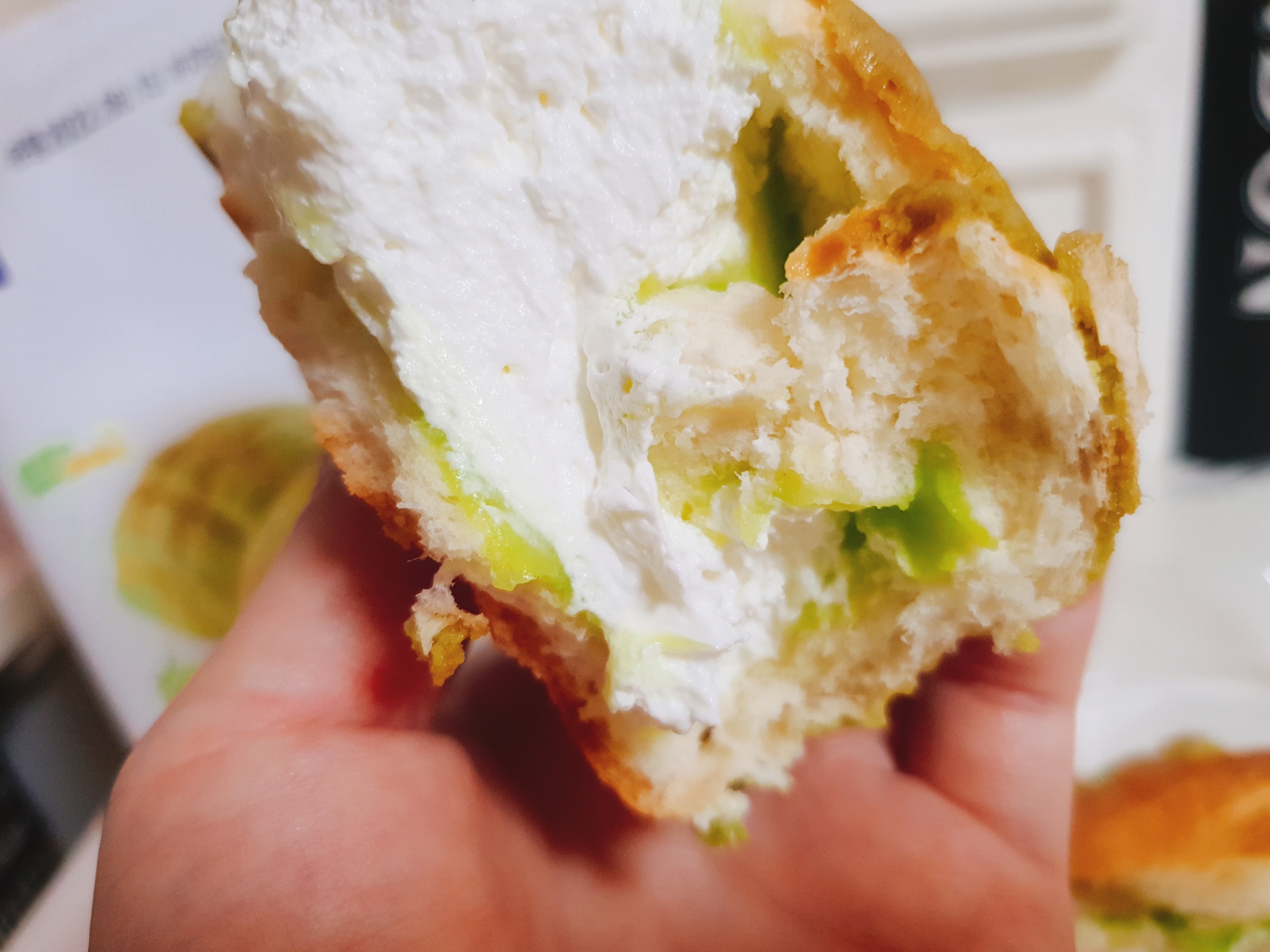 살짜쿵 들었어여~ 기존 모닝빵이었다면 메론빵은 뭔가 빵 윗부분에 뭘 한것같긴 한데 그렇게 바삭하진 않더라구염