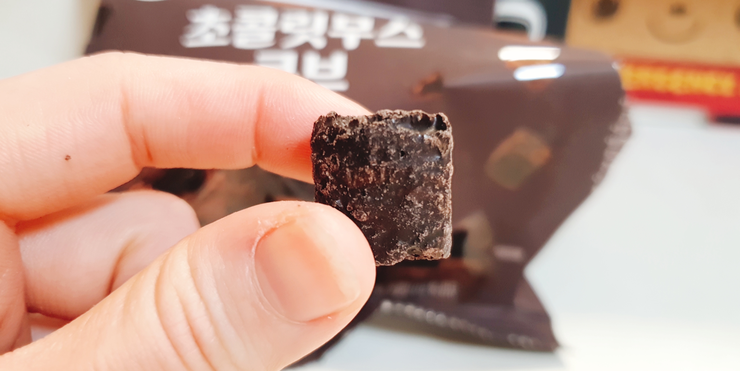 찐 초코맛이 가득나면서 초콜릿 큐브로 이루어진 웨하스느낌의 과자가 사이사이에 있어서