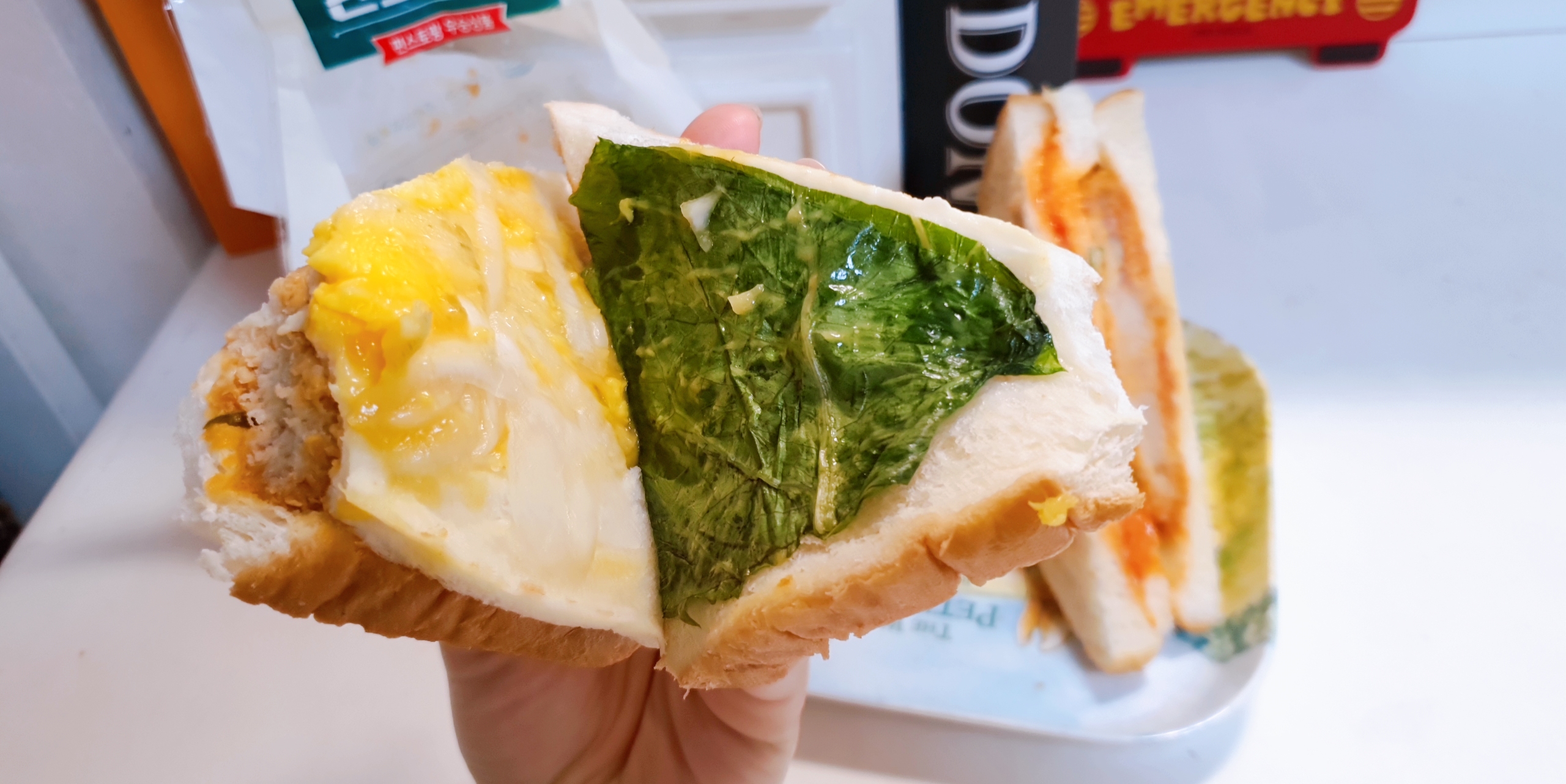 계란은 옹 그냥 맛있네 정도였는데 오이랑 칠리가 매콤하게 환상적이라 진짜 맛있는 든든한 피자샐러드빵? 먹은느낌 이거 먹을려고 저 또 사먹을 거에요~!! 이건 정말 꼭꼭 밥 대신 한끼로 너무 좋을 것 같아요!!