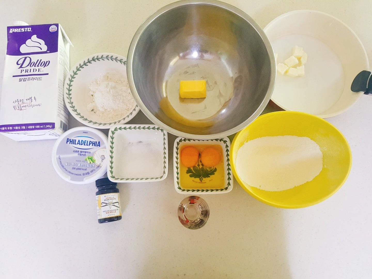 필링재료: 차가운 크림치즈(300g), 5~60% 휘핑한 휘핑크림