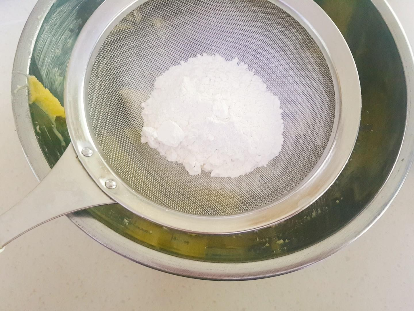 1. 버터를 부드럽게 풀고 설탕을 넣고 섞은 뒤 중력분을 체 쳐 넣고 섞어주세요.