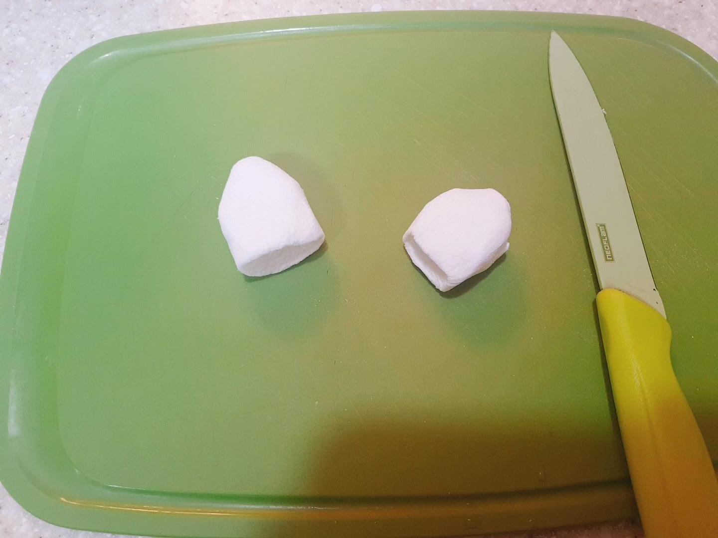 이제 장식을 해주면 되는데요~ 마시멜로우 양옆을 칼로 살짝 잘라서 소귀를 만들어주고
