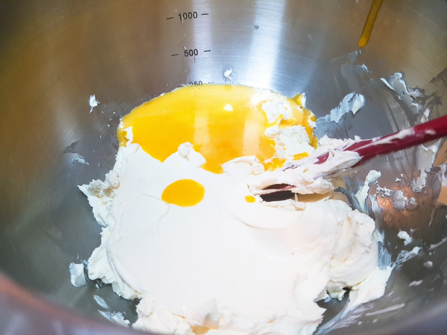 달걀혼합물이 따땃해 지면 마스카포네치즈와 함께 섞어주세요.