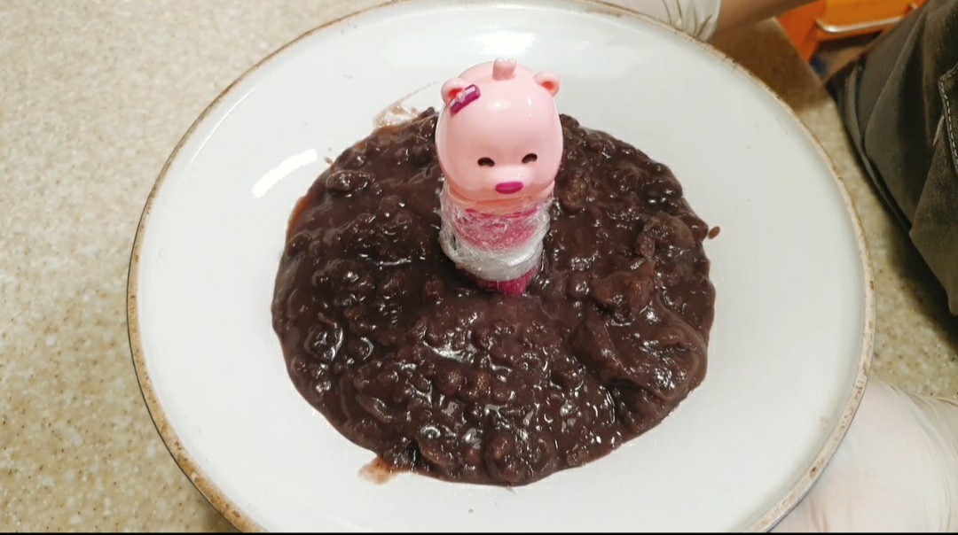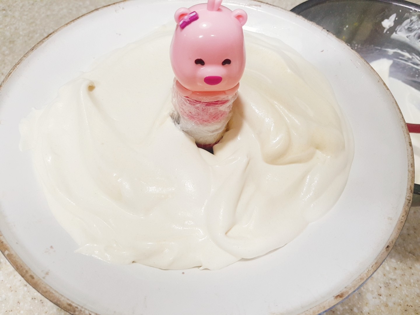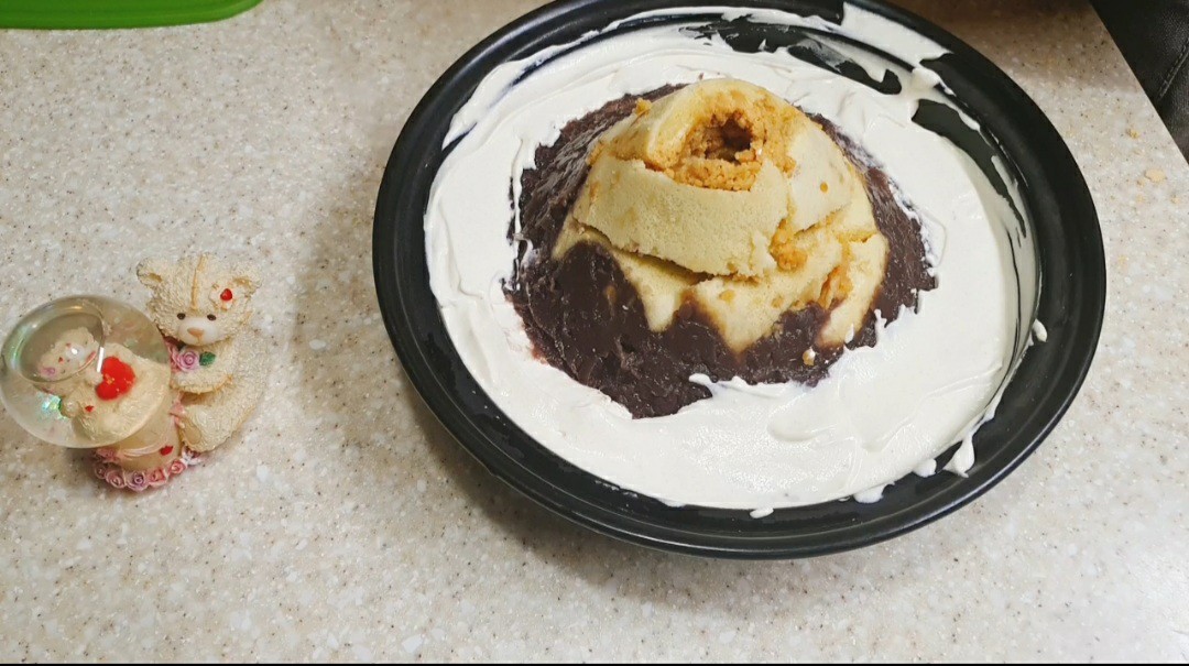 팥소 위에 무스를 올려 넣고 다시 굳히면 끝이에요!