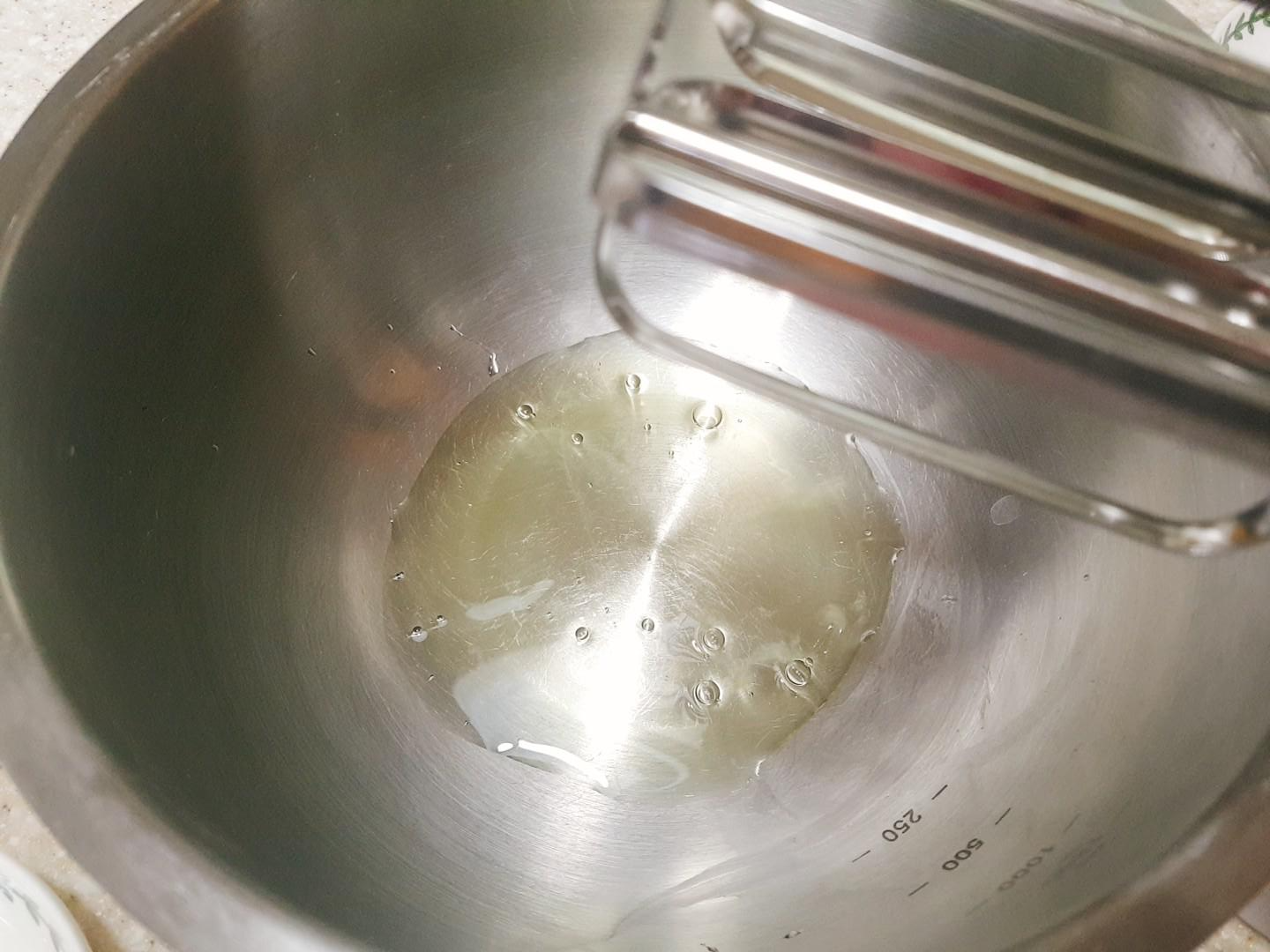 끓는 냄비 위에 올려 85℃까지 중탕해 줄게요. (손으로 만저봤을때 따땃하다 하면 되요~)