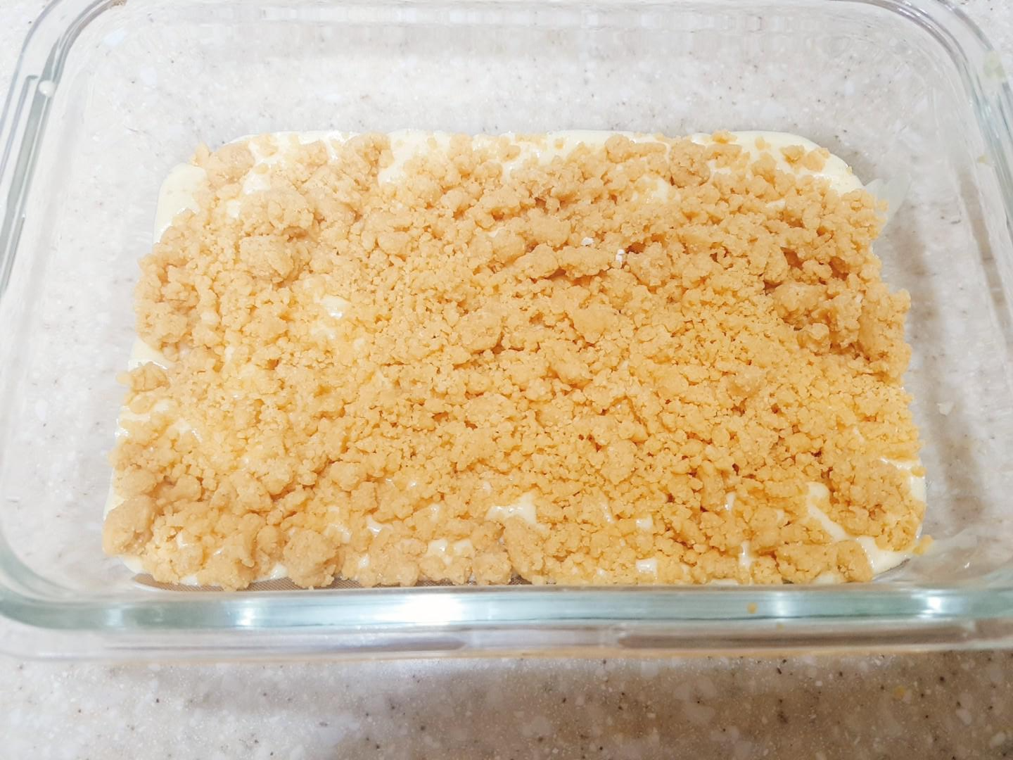3. 비스퀴 반죽 위에 크럼블을 올려 175℃에서 15-20분 가량 구워주세요.