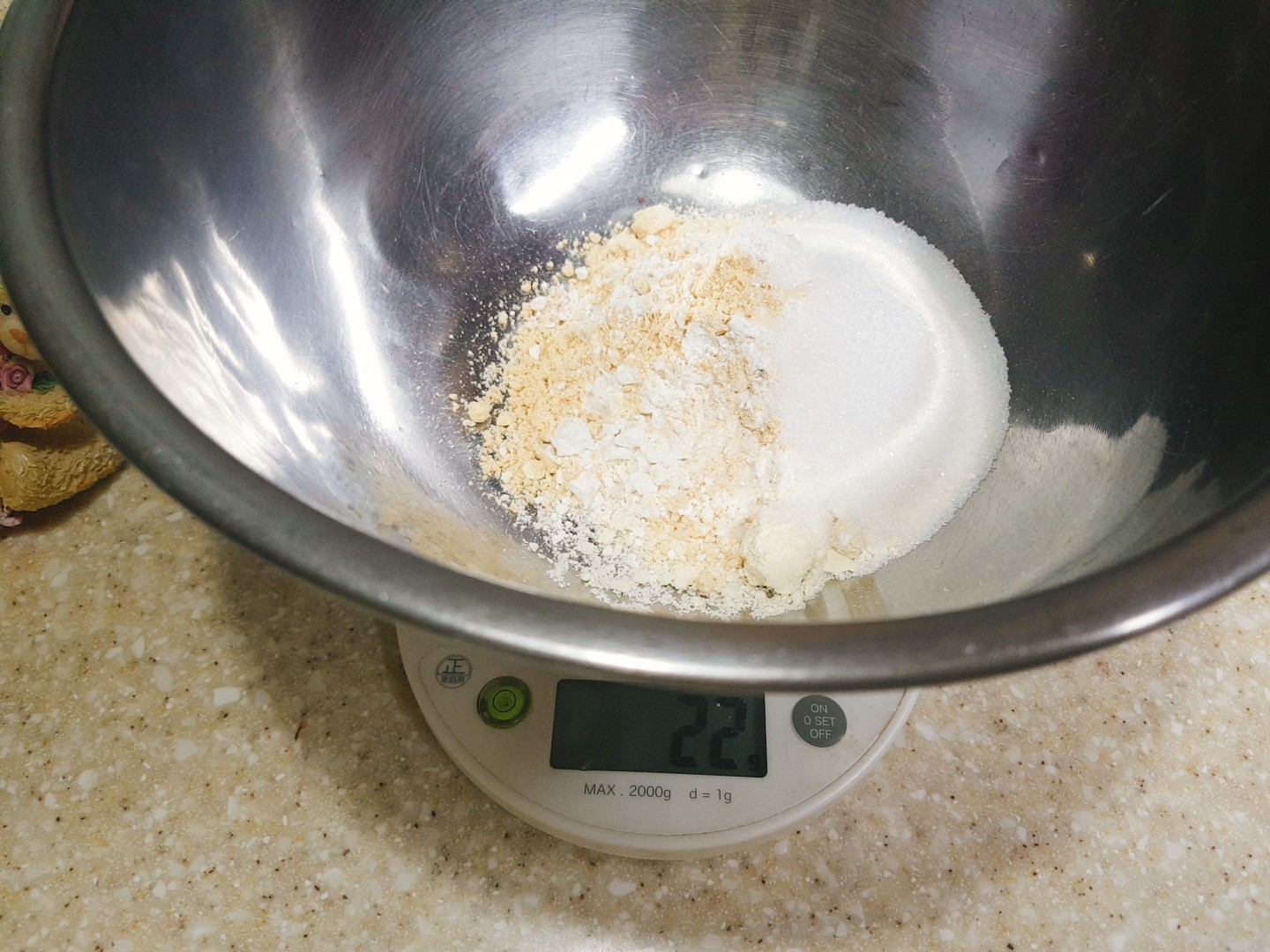각 18g씩 가루류들을 큰 볼에 넣고 설탕 20g 정도를 넣어주세요