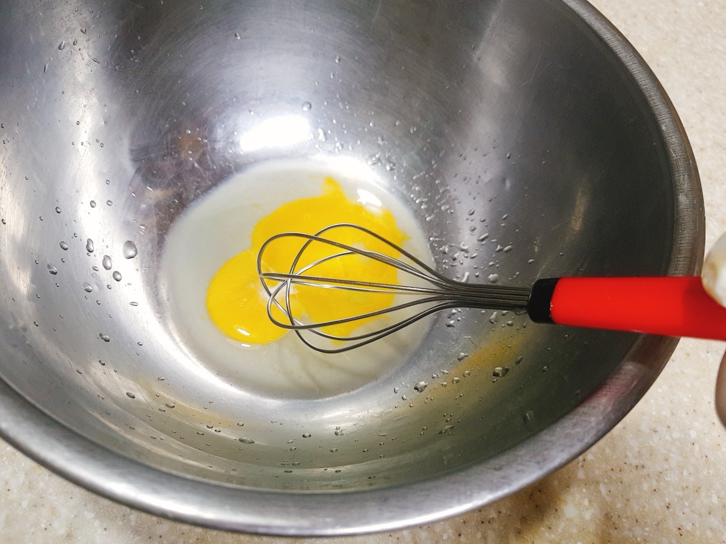 노른자 1개와 물15g을 넣고 잘 섞어준 후