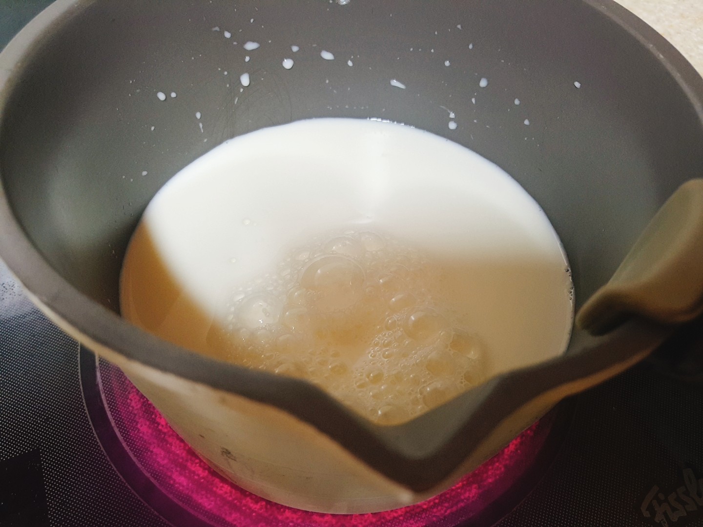 냄비에 우유를 넣고 끓여주면 되요~ 80℃라는데 우유에서 연기가 좀 난다~ 하면 불을 꺼주면 되요!