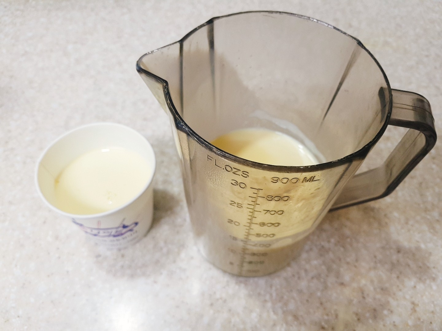 아무래도 비커입이 커서 퐉! 하고 부어져 버려서 섞이는것 같아 종이컵에 우유 혼합물을 옮겨 담고 얇게 오무려서 천천히~ 부어줬더니!