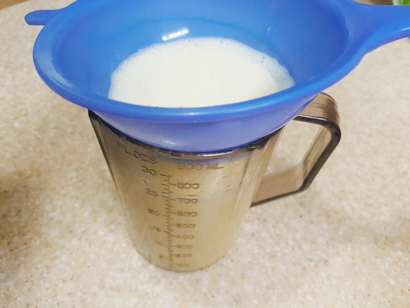 매끈매끈한 예쁜 푸딩을 위해~ 위에 거품들을 걸러네 주세요.