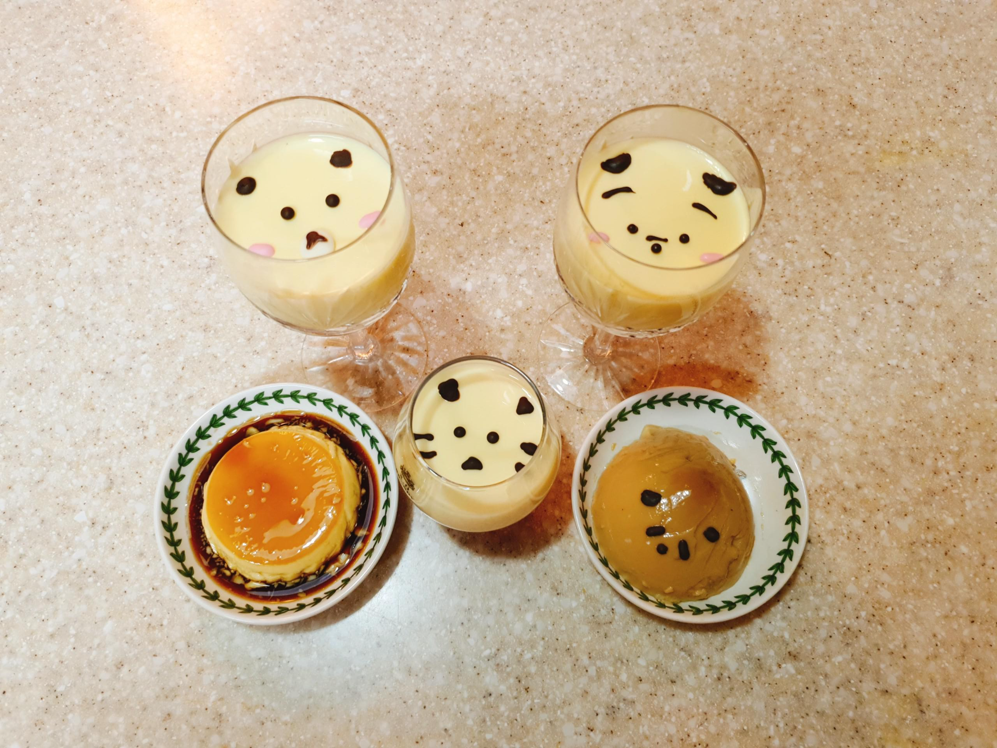 맨 왼쪽은 잘 분리가 안됬는데 그 다음 푸딩들은 천천히 부어줬더니 깔끔하게 잘 분리가 됬죠~? 이제 이 푸딩들을 냉장실에 넣어 3시간 이상 굳혀주면 끝입니당!