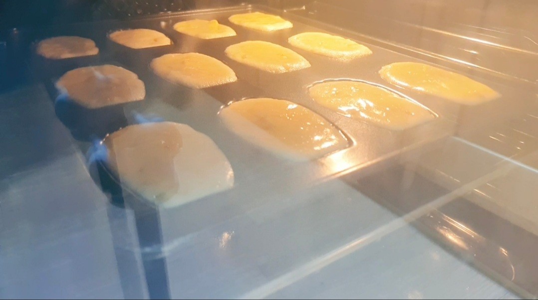80%만 반죽을 채워주세요. 너무 많이 채우면 마들렌이 부풀지 않아요.