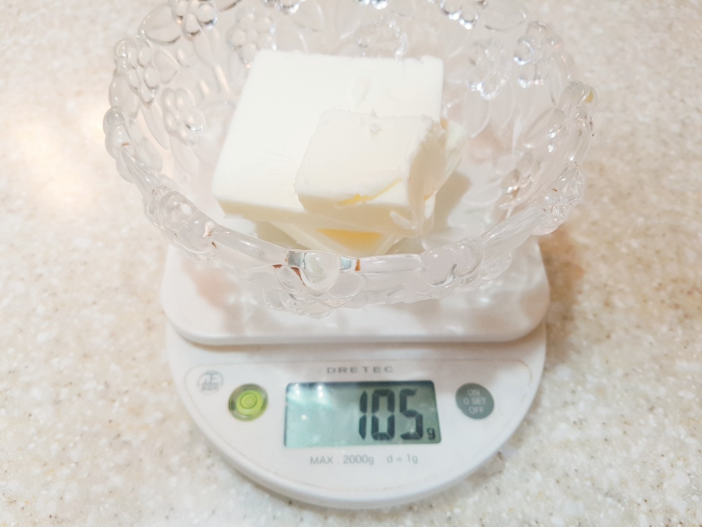 버터를 약 114g 정도 준비하고~ 원래는 중탕을 해서 녹여줘야 되는데요 저는 그냥 전자레인지에 넣어서 녹여 줬어요^^