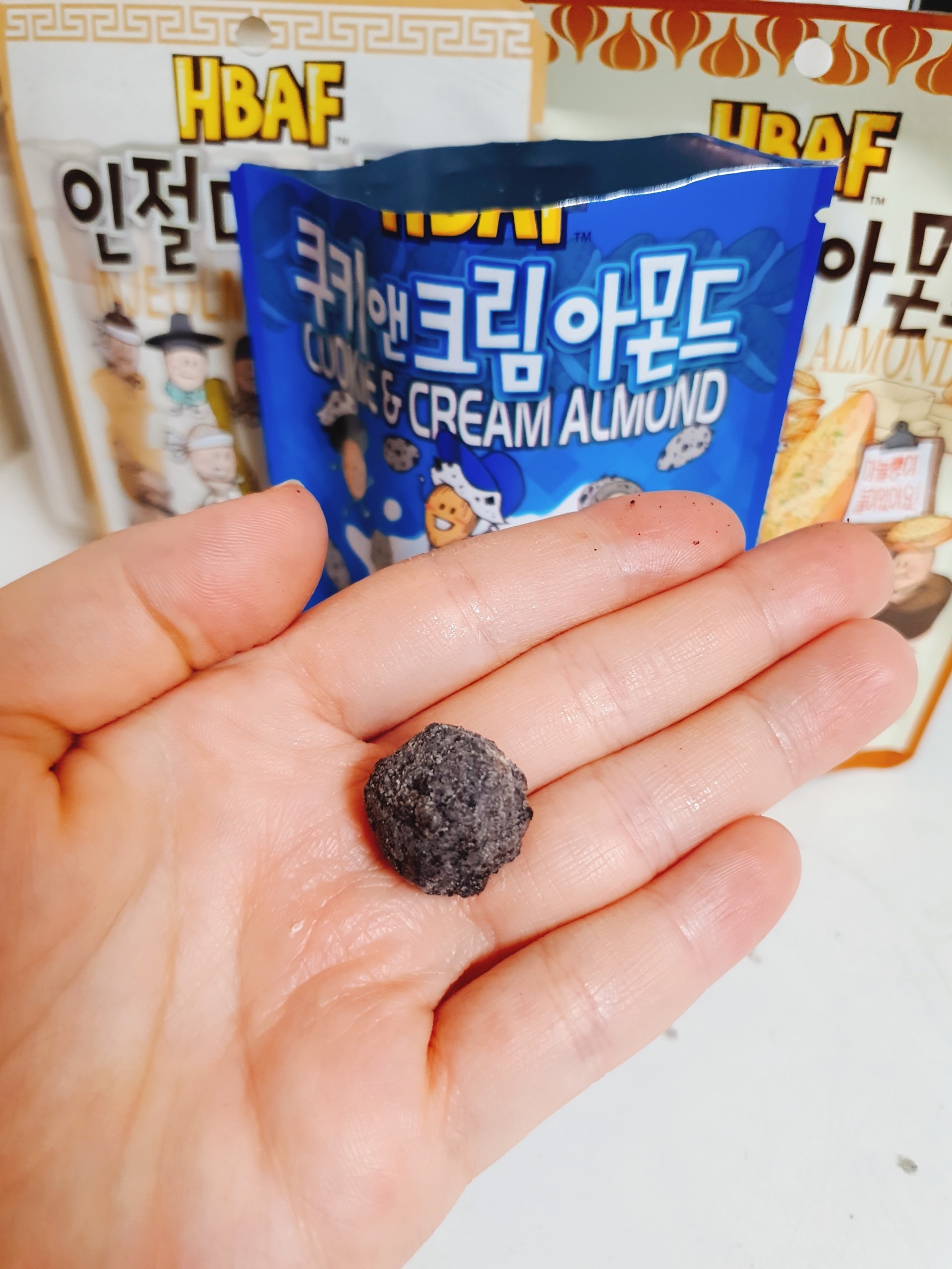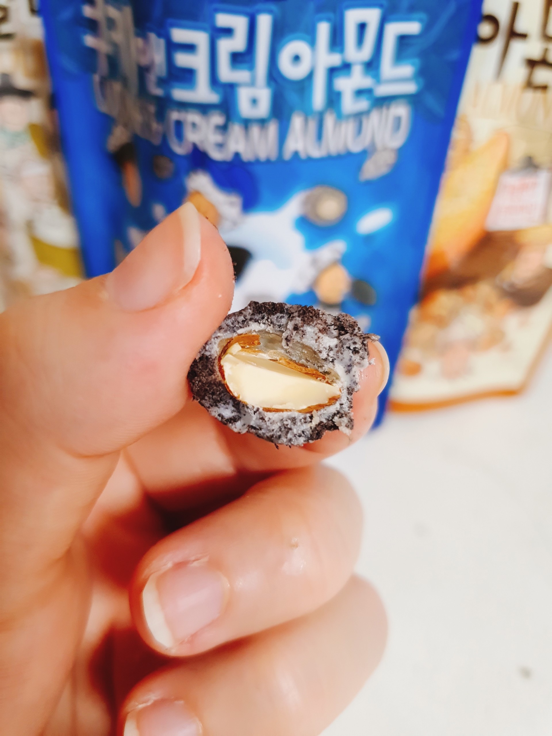 아몬드 초코볼 다들 드셔 보셨죠~? 그것처럼 쿠키앤크림 안에 아몬드가 들어가 있어용!