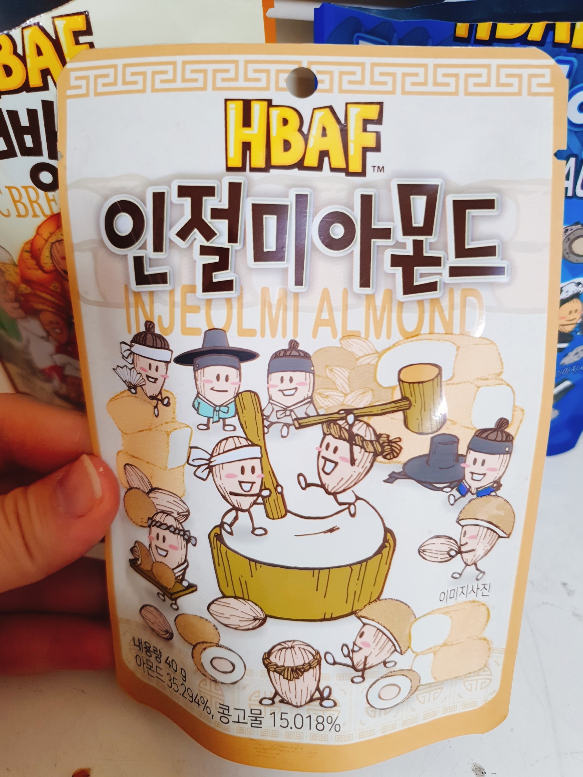 이 아이도 쿠키앤 크림 아몬드처럼 아몬드 겉에 인절미 콩고물이 묻혀져 있어요