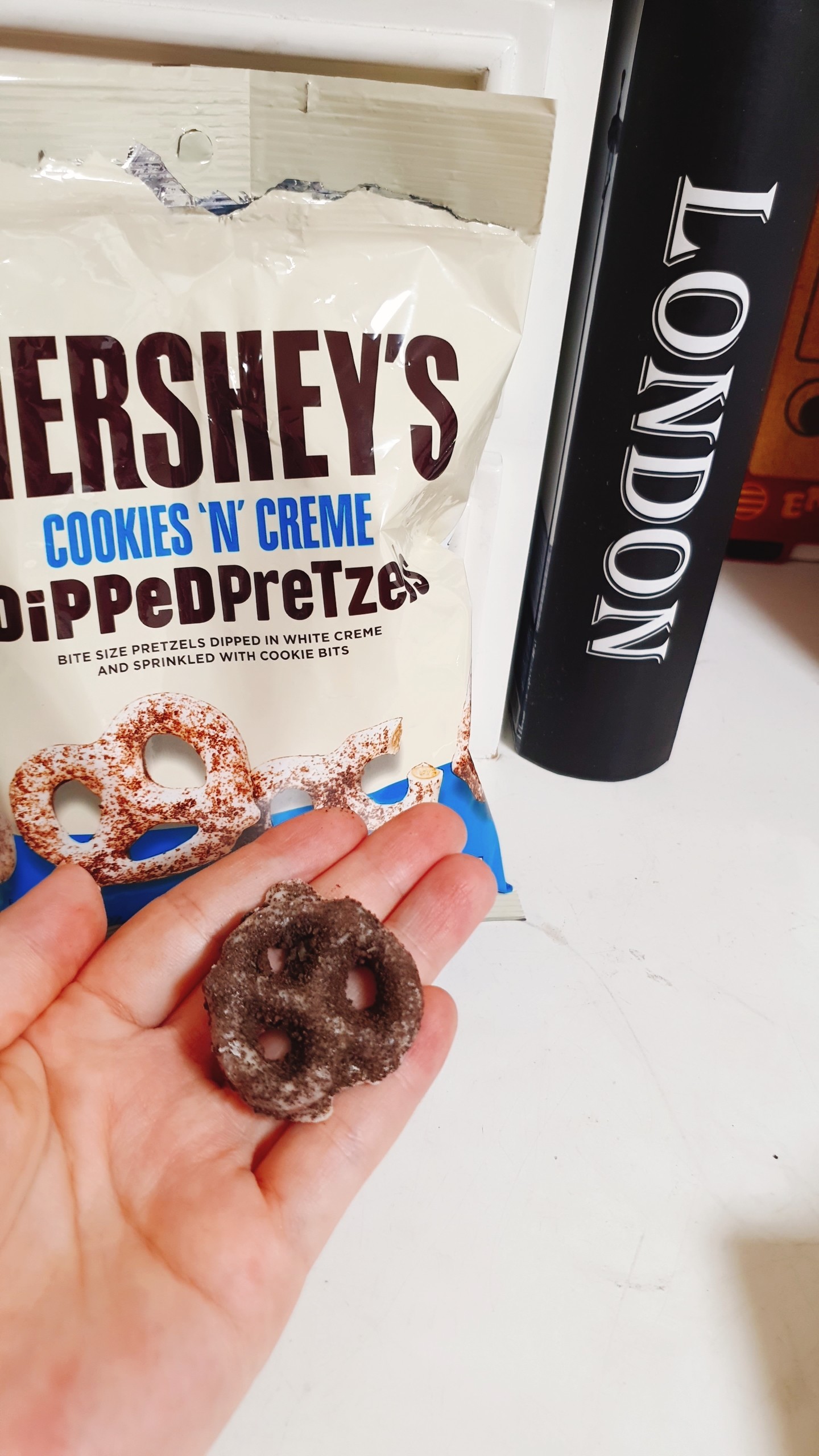 맛 후기: 솔직히 말하면 맛없다 이건 전혀 아니에요!! 맛있었어요 근데 저는 허쉬잖아요? 진한 초콜릿의 대명사 허쉬잖아요??!! 분명 허쉬는 진한 초콜릿인데 왜 프레첼 맛밖에 안나는거죠..? 초코가 안느껴져요... 제 입이 이상한걸까요? 너무 단걸 좋아해서 어지간해선 맛을 못느끼는 건가...?ㅋㅋㅋ 아니 프레첼이 너무 강렬해서ㅋㅋㅋ 난 쿠키앤크림 프레첼을 샀는데 어라? 그냥 프레첼을 내가 잘못샀나? 지나치게 담백하네~란 느낌이였달까요...ㅠㅠ 가격도 6,500원 이었잖아요ㅠㅠㅠ