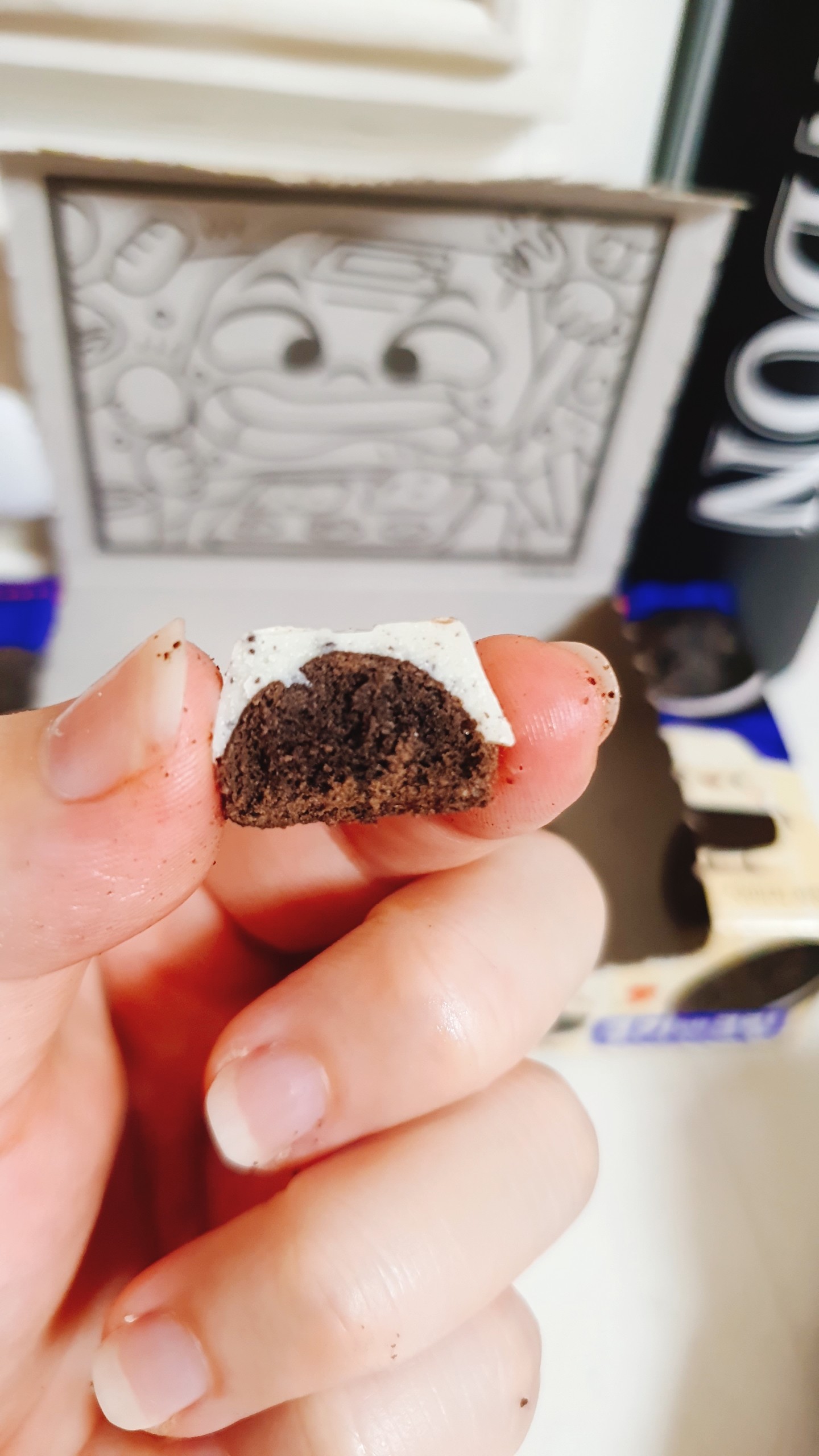 앞은 이렇게 쿠키가 가득가득 묻혀져 있어서 이거 정말 진한 초콜릿 맛이나는 그런거구나!! 느낌이 왔거든요?